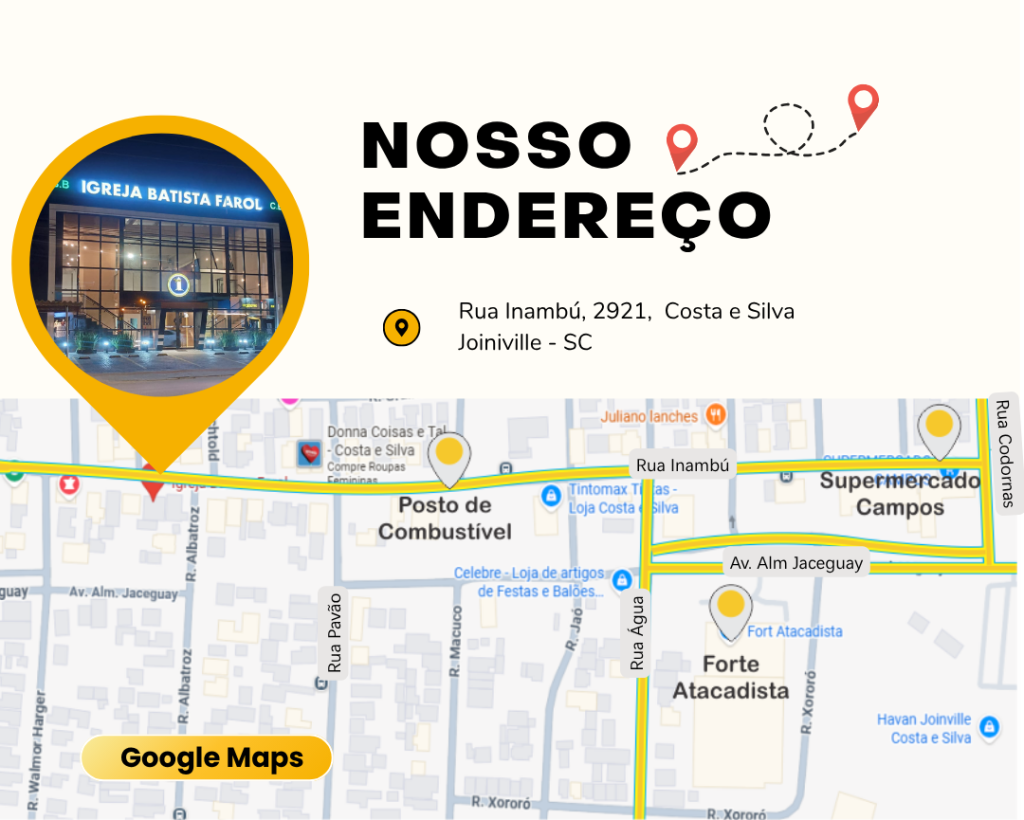Somos de Joinville (SC), do bairro Costa e Silva e estamos de portas abertas todos os dias da semana, acolhendo a comunidade com amor, fé e serviço social contínuo por meio da ONG FAROL, que atua diariamente no atendimento à população, promovendo ações de solidariedade e transformação social.